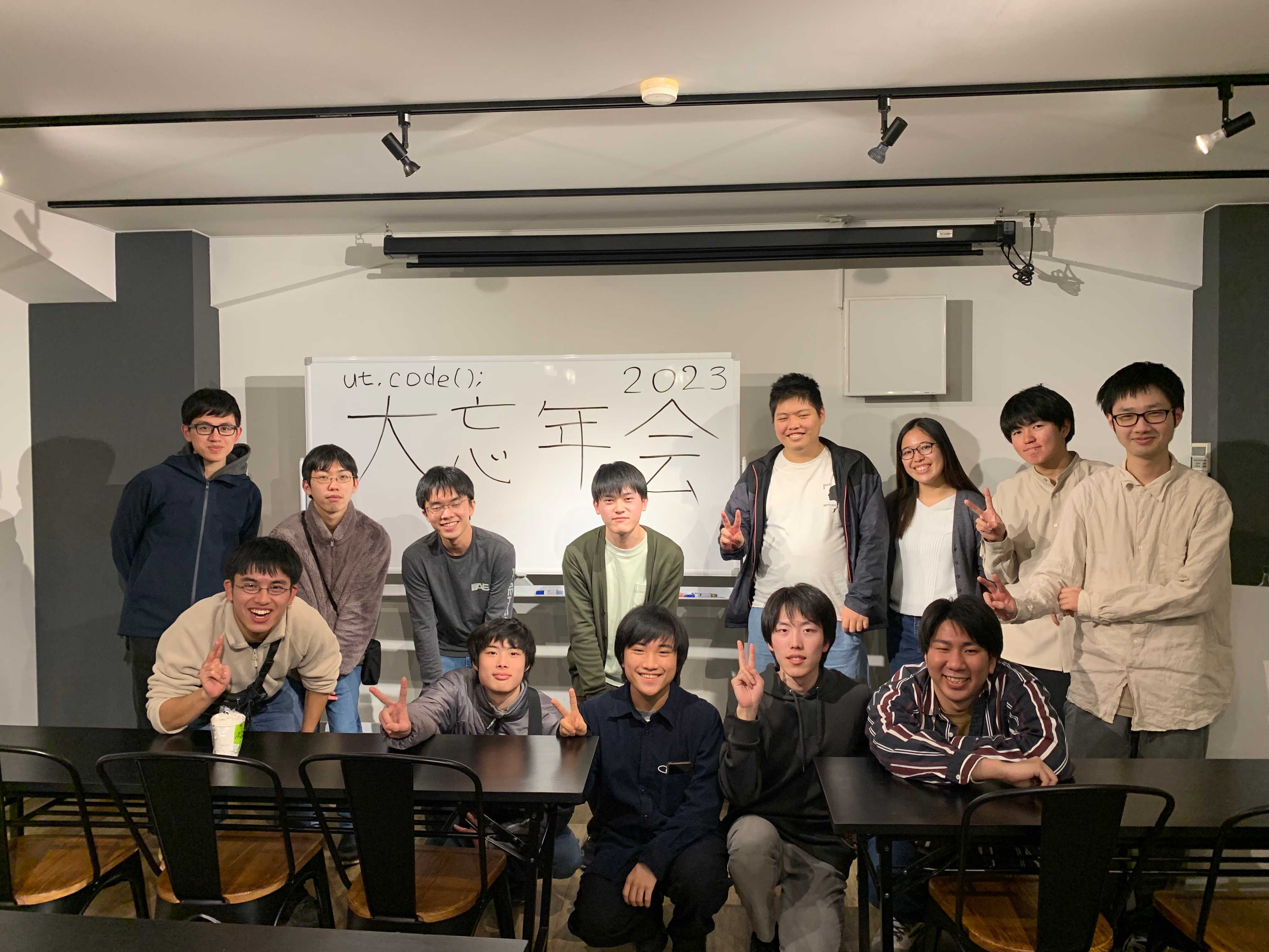 ut.code(); は、2023 年 12 月 22 日(金)に大忘年会を開催しました。みんなでピザを食べながら、新プロジェクト発足に向けてアイディアを出し合いました。