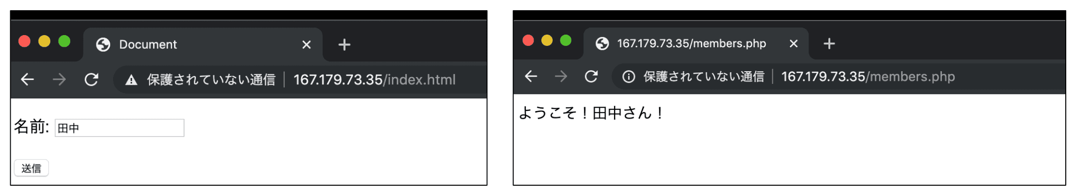 ようこそ!<?php print($_POST['user-name']); ?>さん!