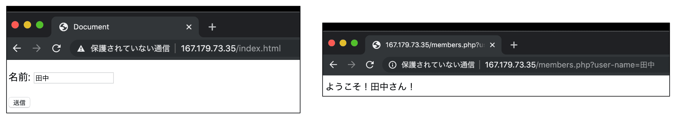 ようこそ!<?php print($_GET['user-name']); ?>さん!